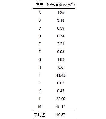 珠三角地區典型城市13家污水處理廠污泥中NP的含量見表 4.污泥中NP的含量在mg·kg-1量級,范圍為0.45~65.17 mg·kg-1,平均值為10.87 mg·kg-1.與Lian等對北京4個污水處理廠剩余污泥中測得的NP含量范圍(3.1~22.3 mg·kg-1)相比,在含量水平上具有一致性.此次調查數據與國外部分地區的污泥中NP含量進行比較(表 5),所調查的城市污泥中NP含量比國外部分地區相對較低.珠三角典型城市不同地區和污水處理廠污泥中的NP殘留差異性很大,最大值與最小值相差倍數達145(圖 1).這是由于污泥中NP的含量受許多因素影響,如各地區居民含壬基酚及壬基酚聚氧乙烯醚表面活性劑的使用量、季節氣候、天氣條件、污水處理廠的不同情況(服務的人口數、是否有工業廢水進入、污泥穩定化技術等)、污泥自身的性質等.圖 1的3個異常值中(即污泥NP含量較高的3家污水處理廠),有兩家(I、M污水處理廠)污水處理廠有工業廢水進入,表明工業廢水是影響污水處理廠污泥中NP含量的一個重要因素.