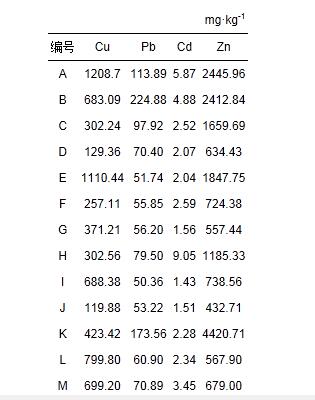 2)珠三角地區13家污水處理廠污泥樣中Cu、Pb、Cd及Zn的幾何平均值分別為435.43、78.88、2.72、1088.01 mg·kg-1.與之前研究相比,本研究城市污泥中Cu、Pb、Zn的含量較高,Cd的含量較低.