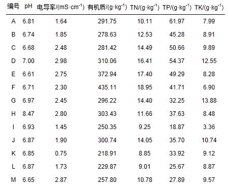 污泥樣品的全氮、全磷、有機質、pH、電導率參照《土壤農業化學分析法》進行檢測,污泥樣品的全鉀、全量Cu、全量Cd、全量Pb、全量Zn采用HCl-HNO3-HF-HClO4消煮-原子吸收光譜測定法(GB/T 17136—1991)進行檢測.