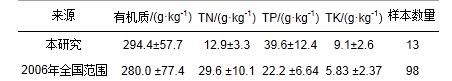 3)珠三角地區13家污水處理廠污泥樣中有機質、總氮、總磷及總鉀的平均含量分別為294.40、12.92、39.63、9.12 mg·kg-1.與前人研究相比,有機質、TP、TK的含量都有所升高.