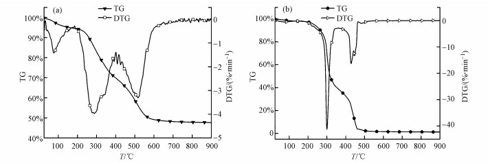 圖 1升溫速率為20 ℃·min-1時單一污泥和咖啡渣燃燒的TG和DTG曲線(a.污泥; b.咖啡渣)