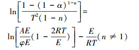 (7) 式中, φ為升溫速率(℃·min-1), φ=dT/dt; n為反應級數, 令