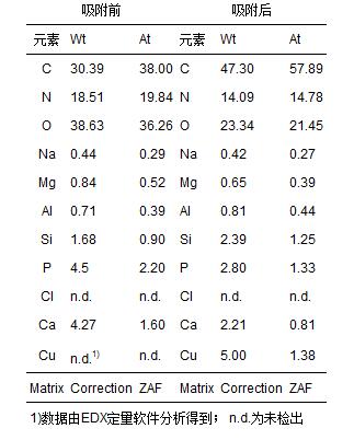 表1 菌糠吸附前和吸附后的X射線能譜分析 1)/%