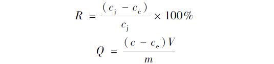 式中,cj表示銅離子初始濃度,mg ·L-1; ce表示銅離子平衡濃度,mg ·L-1; V表示吸附時所用銅離子溶液的體積(本研究統一用100 mL); m表示菌糠投加量,g.