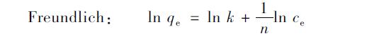 將吸附平衡所得數據分別用Langmuir方程和Freundlich進行擬合,吸附模型線性表達式如下.