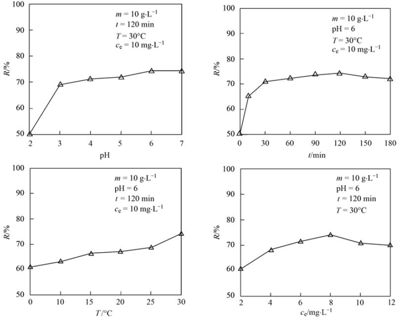 隨著我國工業化進程的加快,采礦、 冶煉、 金屬加工、 電鍍、 電子等工業廢水大量產生,影響生態環境危害人體健康. 銅離子是工業廢水中普遍存在的重金屬污染源,以單質或各種礦物形式存在. 除了采礦,熱交換以及其他工業用途都可以把銅排入水體中. 銅是人體必需微量元素之一,對于造血、 細胞生長、 某些酶的活性及內分泌腺功能均有重要作用. 但體內過多的銅會引起貧血、 肝臟病理性改變及神經系統損傷,導致腎衰、 肝硬化、 老年癡呆和帕金森病等[1,2]. 在我國,含銅廢水必需經過處理至少達到污水排放三級標準[3]時才能排放. 目前,處理含Cu2+廢水的傳統方法主要有化學沉淀、 離子交換、 反滲透、 氧化還原、 活性炭吸附等,這些方法在處理低濃度重金屬廢水時具有費用高、 能耗大、 操作繁瑣、 易造成二次污染,不適于低濃度含銅廢水的處理[4,5].
