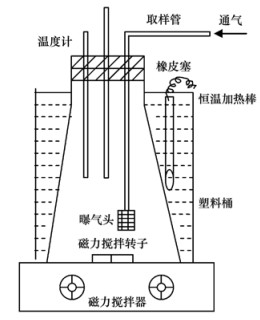 試驗用SBR反應器,材質為有機玻璃,有效容積4 L,內徑16 cm,高徑比為1.56(圖1). 反應器每周期運行4.8 h,包括進水1 min、 厭氧80 min、 好氧196 min、 沉淀4 min、 出水4 min以及閑置4 min共6個階段. 反應器每周期進水2 L,出水2 L. 反應器攪拌強度在80 r ·min-1左右,曝氣強度在12 L ·(L ·h)-1左右,溫度在22℃±2℃(由水浴控制)、 pH值在7.5左右. 每天從反應器中排出一定量混合液,維持系統污泥齡在23 d左右.