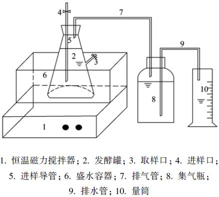 將600 mL果膠廢水添加至小發酵罐(1000 mL),接種上述馴化污泥,發酵罐中t=35℃、 pH為7.0左右、 VSS為10 g ·L-1. 接種后反應器用氮氣吹5 min,以驅除發酵罐中的空氣,然后置于恒溫水浴中培養.