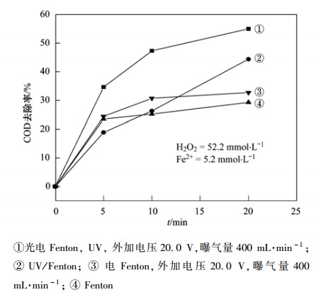 圖 2 不同處理方法對(duì)COD的去除效果