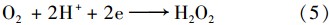 首先比較了不同處理過程,例如傳統(tǒng)Fenton技術(shù),UV/Fenton技術(shù)、 電Fenton技術(shù)以及光電Fenton技術(shù)等對(duì)污泥脫水液的處理效果. 根據(jù)Fenton技術(shù)降解有機(jī)污染物原理,由H2 O2產(chǎn)生的 ·OH在有機(jī)物降解中起主要作用[式(1)]. 對(duì)于傳統(tǒng)的Fenton過程,只獲得較低的COD去除率. 分析原因是由于在Fenton反應(yīng)過程中產(chǎn)生Fe3+和OH-,形成Fe(OH)3和Fe(OH)2沉淀,僅少量的Fe2+參與Fenton反應(yīng), ·OH產(chǎn)生量少,因此在降解20 min后僅得到一個(gè)較低的COD去除率. 增加UV照射后,COD去除率明顯增加. 可以解釋為在UV/Fenton過程中,UV可以加快H2 O2的分解速率[式(2)],同時(shí)能促進(jìn)Fe2+的不斷生成[式(3)、 (4)],因而有更多的 ·OH產(chǎn)生. 因此相對(duì)于傳統(tǒng)的Fenton過程,UV/Fenton對(duì)污泥脫水液COD去除率明顯增高. 同時(shí),電Fenton技術(shù)對(duì)污泥脫水液的COD去除率也明顯高于傳統(tǒng)的Fenton過程. 在電Fenton技術(shù)處理污泥脫水液過程中,在陰極可以原位產(chǎn)生H2 O2[式(5)],同時(shí)Fe3+可以在陰極得電子被還原成Fe2+,這將加速 ·OH的產(chǎn)生,因而在電Fenton過程中,COD去除率也明顯高于傳統(tǒng)的Fenton過程. 對(duì)于光電Fenton過程,UV和外加電壓能同時(shí)加速 ·OH的產(chǎn)生,因此相對(duì)于傳統(tǒng)的Fenton過程、 UV/Fenton過程以及電Fenton過程,光電Fenton過程可以獲得最高的COD去除率(圖 2).