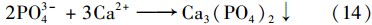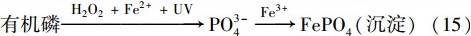 在最佳試驗(yàn)條件下,污泥脫水液經(jīng)處理前后均未有PO3-4檢出,TP由3.18 mg ·L-1降低到0.11 mg ·L-1,去除率達(dá)到了96.5%. 在原污泥脫水液中沒有PO3-4檢出是由于在污泥調(diào)理過程中加入石灰,形成Ca3(PO4)2沉淀[式(14)]. 同時(shí)試驗(yàn)結(jié)果發(fā)現(xiàn),污泥脫水液經(jīng)光電Fenton技術(shù)處理后仍未有PO3-4檢出,可以解釋為在利用光電Fenton處理污泥脫水液時(shí),H2 O2及Fe2+后產(chǎn)生的 ·OH首先將有機(jī)磷氧化為PO3-4,而后PO3-4與Fe3+作用形成FePO4沉淀,即化學(xué)法除磷. 因而在污泥脫水液經(jīng)光電Fenton處理后TP濃度降低,但仍未有PO3-4檢出. 其反應(yīng)過程可表示為式(15). 污泥脫水液中TP經(jīng)光電Fenton處理后濃度有明顯降低,說明在利用光電Fenton技術(shù)降解廢水中有機(jī)物的同時(shí),能對(duì)廢水中的TP有較強(qiáng)的去除效果.具體參見污水寶商城資料或http://www.bnynw.com更多相關(guān)技術(shù)文檔。