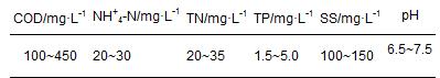 試驗用水采用污水廠實際城市污水,進水水質如表 2.