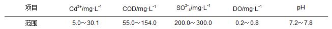 試驗中對富集培養好的SRB純菌株進行離心濃縮,制成菌株的濃縮液.利用細胞包埋固定化技術將濃縮液同沸石結合制成具有生物活性的載體填料加入厭氧生物濾池進行SRB的馴化培養.待馴化穩定后,研究生物濾池初期和穩定期對Cd2+、 COD和SO2-4的去除效果,穩定期生物濾池中Cd2+、 COD和SO2-4的沿層變化及進水Cd2+濃度、 濾速(V)對Cd2+去除的影響. 1.3 試驗原水水質及運行參數 試驗進水是根據采集到的湖南省株洲市工業園區附近含Cd廢水的水質情況,在本次試驗中采取人工配水的方式來模擬,廢水水質各種主要指標如表1所示.