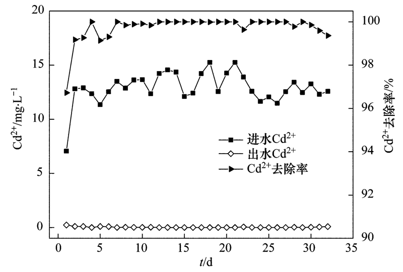 圖2 運行初期生物濾池對Cd2+的去除效果