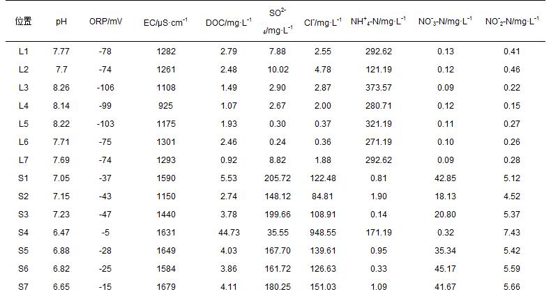 (2)填埋垃圾氧化還原電位低,氨氮含量高而硝氮、 亞硝氮含量低.地下水中氧化還原電位低,氨氮含量低而硝氮、 亞硝氮含量高.