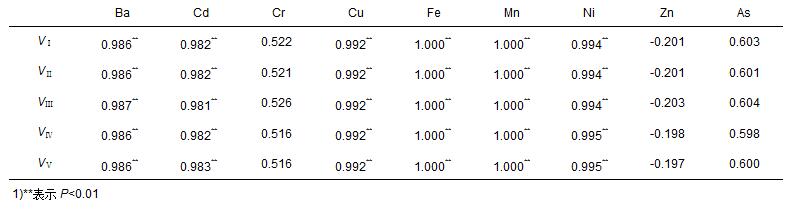 表6 地下水中重金屬相關(guān)性分析 1)(n=7)