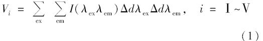 式中,Vi為區(qū)域i的體積積分,I(λexλem)為激發(fā)波長(zhǎng)λex、 發(fā)射波長(zhǎng)λem時(shí)的熒光強(qiáng)度,Δdλex、 Δdλem分別為激發(fā)波長(zhǎng)與發(fā)射波長(zhǎng)的增量,本研究中均為5 nm. 1.5 統(tǒng)計(jì)分析