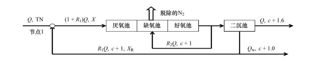 圖3 A2/O工藝脫氮各單元參數(shù)示意