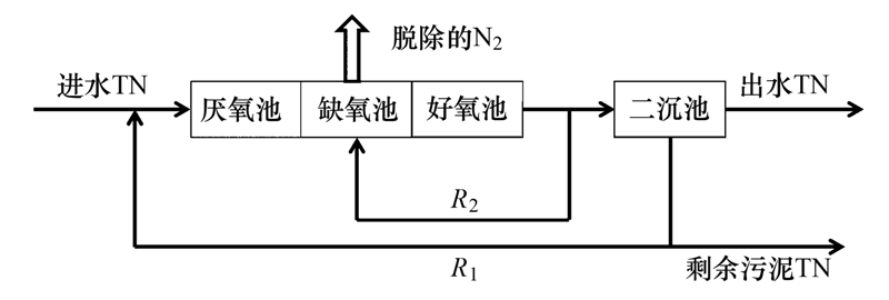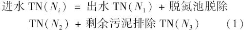 (7)通過排出剩余污泥排出的TN主要指污泥中的有機(jī)氮,忽略剩余污泥排出的NH+4-N和NO-3-N.