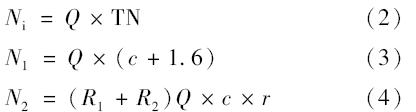 XR(mg ·L-1),污泥齡為θC(d),c為出水中NO-3-N的含量(mg ·L-1),TN為進(jìn)水總氮含量,污泥回流比為R1,混合液回流比為R2(見圖3),r為缺氧池的反硝化去除率,進(jìn)水中TN的含量Ni則可以得到: