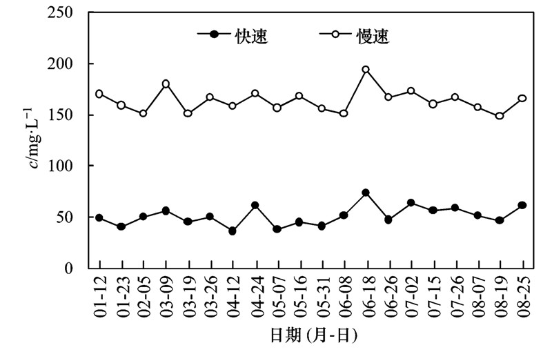 (5)顆粒態(tài)COD中組分測(cè)定 顆粒態(tài)COD中快速、 慢速和惰性降解物所占比例均是通過(guò)測(cè)定原污水及過(guò)濾后污水的快速、 慢速和惰性降解物的含量后相減所得.