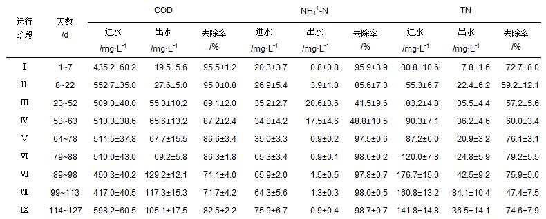 表 1 SBMBR不同階段的運行條件