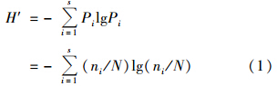 采用Shannon-wiener多樣性指數(shù)H′表征微生物種群多樣性,其計算公式如下[17]:
