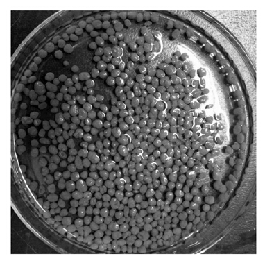 接種的亞硝化顆粒污泥為實驗室SBR中培養(yǎng)成熟的亞硝化顆粒污泥[13],外觀為棕黃色,結構密實,具有規(guī)則的外形和清晰的邊緣[圖 2、 圖 3(a)]. 為了便于考察反應器構型對顆粒污泥的影響特性,CSTR的初始運行控制參數和SBR保持基本一致,如氣體上升流速、 進水氮容積負荷、 進水基質濃度、 MLSS、 水力停留時間(HRT)以及溫度等. CSTR運行初期反應器內不斷產生絮狀污泥,前兩周內出水SS呈上升趨勢,在隨后的兩周內有較大波動(圖 4); 從圖 3可以看出CSTR中顆粒污泥的完整性出現惡化,第15 d時的顆粒污泥外觀較接種時呈現明顯的模糊、 不規(guī)則; 圖 5所示為CSTR中顆粒污泥的平均沉降速率變化過程,從中可見在反應器運行的前一個月內顆粒污泥的平均沉降速率由接種時的130 m ·h-1降至110 m ·h-1左右. 反應器構型的變化造成了顆粒污泥的解體.