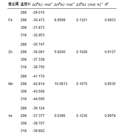 表 7 MPGM吸附重金屬離子的熱力學參數(shù)