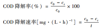采用密封催化消解法[25],利用化學耗氧量測定儀(HH-6型,中國姜堰)進行COD的測定. 將溶液初始COD記為c0,t時間后COD記為ct,則: