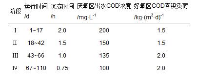 試驗中厭氧區接種污泥取自蘇州新區某污水處理廠厭氧污泥,接種后污泥濃度(MLSS)為6 g ·L-1. 采用混合污水經過30 d的啟動運行,出水水質穩定.