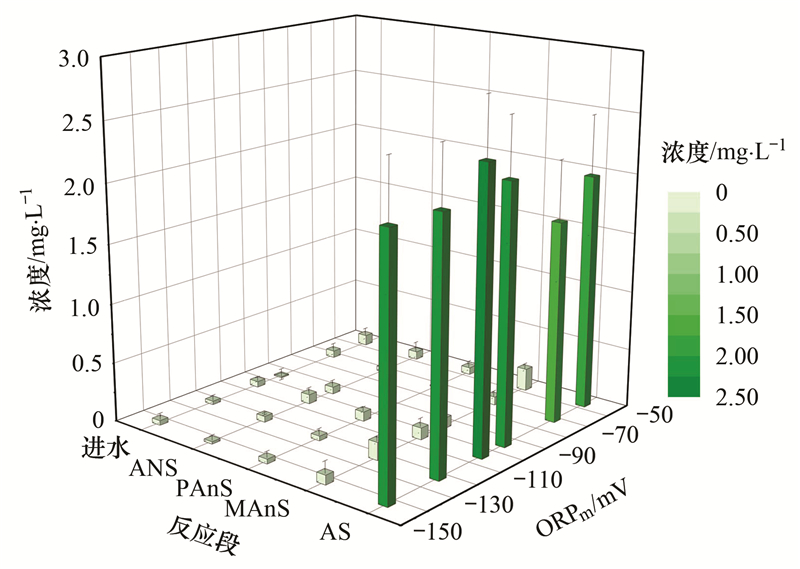 ORP 是表征污水處理系統環境條件的參數. 從微觀角度來說,活性污泥微生物群落結構、 優勢菌群的動態變化與其生存環境的ORP密切相關,即活性污泥中特定的優勢微生物有其適宜ORP 范圍[27]. 另有研究表明,調控ORP值可使微生物新陳代謝過程中的NADH/NAD+和NADPH/NADP+的含量發生改變,并激活某些關鍵酶,進而改變物質的代謝網絡,促使微生物沿著目標代謝途徑完成同化反應和異化反應[27]. 結合試驗結果,當ORPm設定值為-95 mV時,主缺氧段硝酸鹽氮和TN轉化量均達到峰值,說明該ORPm設定值在反硝化細菌適宜ORP范圍內,在此氧化還原條件下,硝酸鹽還原酶活性可得到最大程度地激活. 該值與Peng等的研究成果基本一致[19].