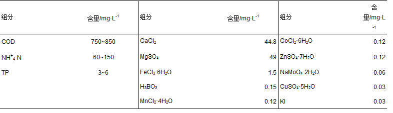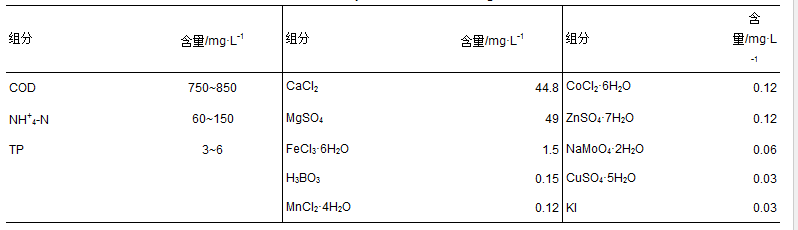 表 1 混合污水的組成