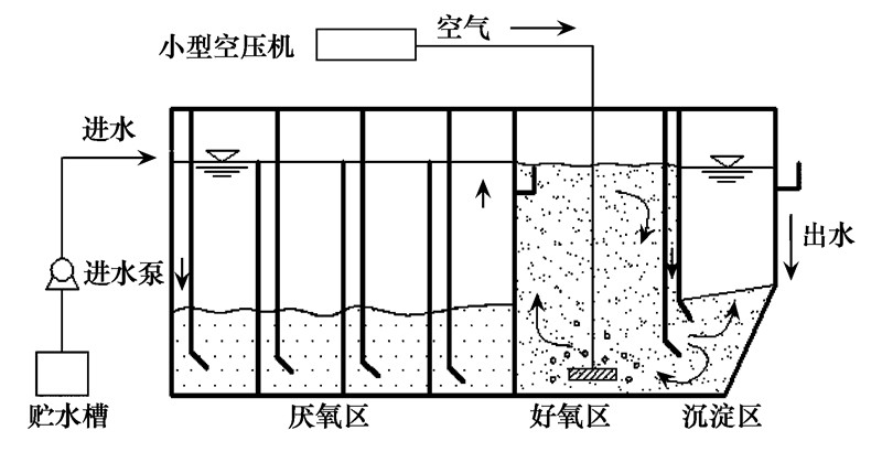 本研究將厭氧折流板反應器與好氧組合為一體化工藝并加以改進,實現耦合運行. 利用ABR良好的節能去碳能力,在ABR段完成有機物的降解,同時通過其有效的酸化過程改善碳源質量、 改變C/N比,以利于后續具有亞硝化功能的好氧顆粒污泥的培養,提高連續攪拌反應器系統的運行穩定性.