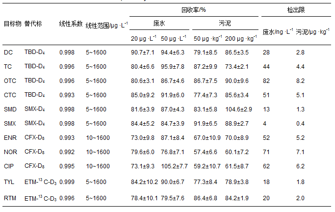 2.1 SPE-LC-MS/MS對養豬廢水和污泥中抗生素分析的適用性