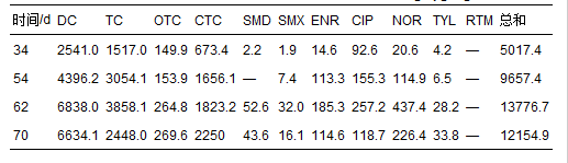 表 4 活性污泥中抗生素濃度