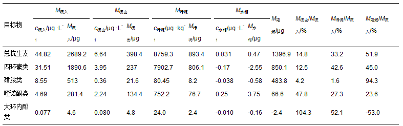 表 5 MBR中抗生素的物料恒算