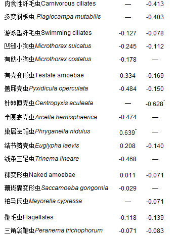 所有微型動物統計數據均取3個平行樣平均值進行分析.統計分析采用軟件SPSS 19.0進行Pearson相關性、 LSD多重比較(α=0.05)和主成分分析(PCA),其中Pearson相關性分析之前需將所有原始數據按對數公式x=ln(x+1)進行轉換.采用Origin 9.0和Excel 2007完成相關圖表制作.