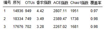 原始序列數(shù)據(jù)通過質(zhì)量控制,舍棄低質(zhì)量序列之后序列長(zhǎng)度大部分分布在400~600 bp之間,平均長(zhǎng)度均在440 bp以上,各樣本序列數(shù)均在500 bp以上. 物種分類采用RDP classifier軟件. 按照相似度為97%的標(biāo)準(zhǔn)將操作分類單位(operational taxonomic units OTU)進(jìn)行分類[16],運(yùn)行軟件mothur(http://www.mothur.org/)中的summary.single 命令,計(jì)算常用的生物多樣性指數(shù),如豐富度指數(shù)(Chao/ACE指數(shù))、 覆蓋率指數(shù)(good's coverage)和多樣性指數(shù)(Shannon指數(shù)).