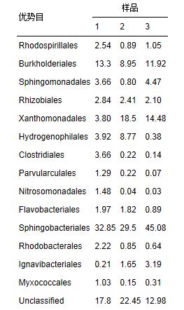 表 2 細(xì)菌群落結(jié)構(gòu)目水平上的組成
