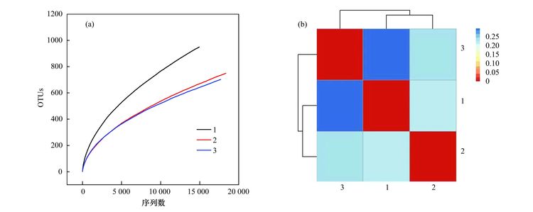 圖 2 細(xì)菌群落豐富度稀疏曲線和聚類分析