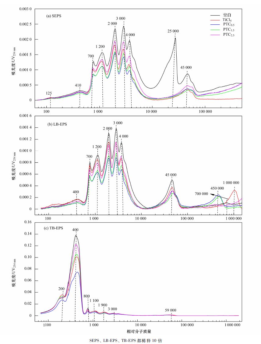 圖 6 不同B值PTC對不同EPS組分相對分子質量分布的影響