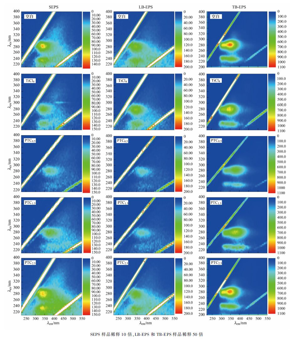 2.2 不同B 值PTC投加量處理對EPS分布和組成的影響