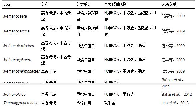 表 3 厭氧活性污泥中優勢古菌的分布、分類單位和主要代謝底物