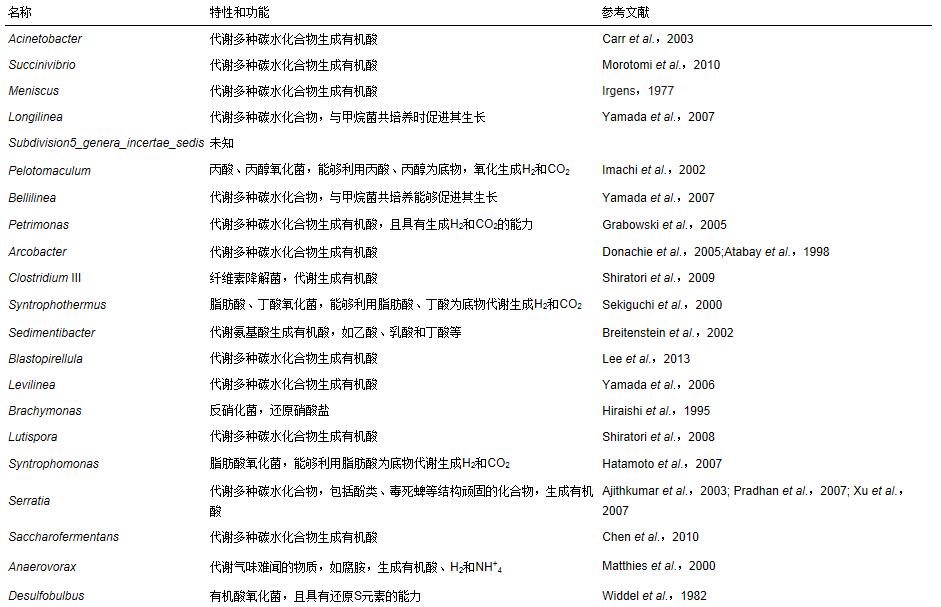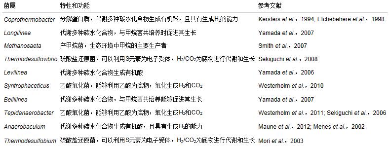 表 1 高溫厭氧活性污泥中優勢細菌的功能