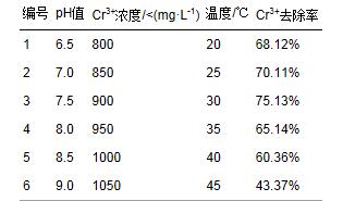 表 5 固定化混合菌Z1去除Cr3+的最陡爬坡實驗設計及結果