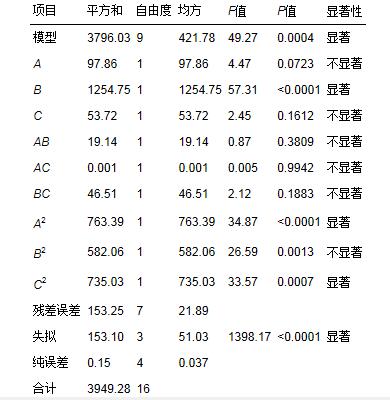 表 7 固定化混合菌Z1去除Cr3+的 Box-Behnken實驗回歸分析結果