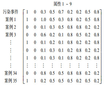 相似歷史案例篩選,即在諸多成功的歷史案例中通過(guò)某種方法篩選出與當(dāng)前污染事件最相似的一個(gè)或幾個(gè)案例,以借鑒其應(yīng)急處置的方法和經(jīng)驗(yàn).要完成相似歷史案例的篩選,需根據(jù)歷史上突發(fā)水污染事件的資料,首先設(shè)定對(duì)篩選影響較大的屬性指標(biāo),建立水污染應(yīng)急處置技術(shù)篩選歷史案例庫(kù)框架結(jié)構(gòu),然后通過(guò)整理歸納,建立水污染應(yīng)急處置技術(shù)篩選歷史案例庫(kù).歷史案例庫(kù)框架形式如表 1所示.