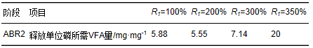 (2) 在污泥回流比為100%,硝化液回流比從100%增大至350%時,ABR第2隔室釋放1 mg磷需要VFA的量分別為5.88、 5.55、 7.14和20 mg,ABR為厭氧釋磷提供了足夠的優(yōu)質碳源.