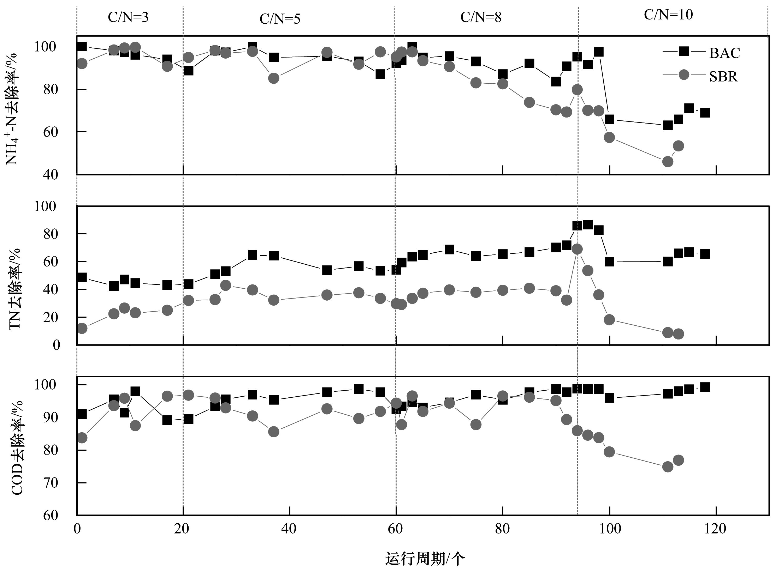2.1.1 BAC對低C/N比廢水脫氮效果的影響